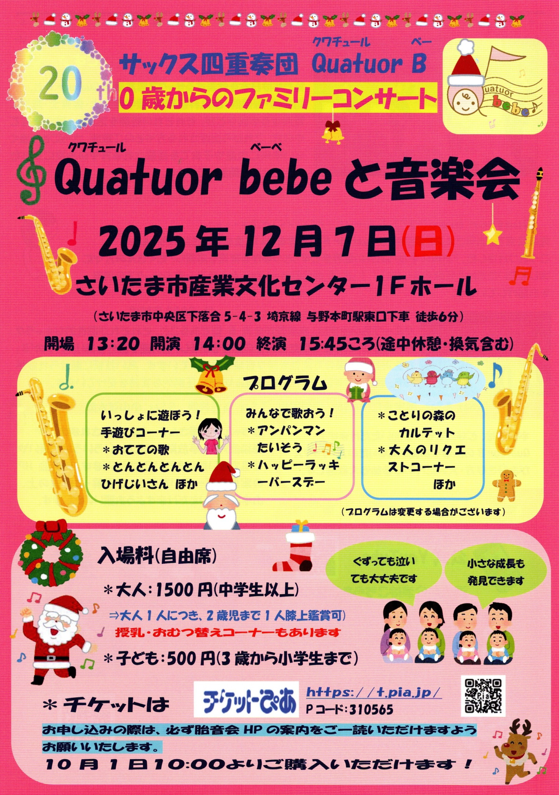4Brothers 第三回公演 〜ふぉーぶら冬物語’25〜 ファブリス・モレティ サクソフォン リサイタルツアー2025 第43回サクソフォン・コンサート カトレアサクソフォンカルテット リサイタル 第20回 Quatuor bebeと音楽会 NORIYUKI SHIMIZU Saxophone Recital vol.4 ジーリッシモサクソフォーンオーケストラ単独演奏会Vol.2