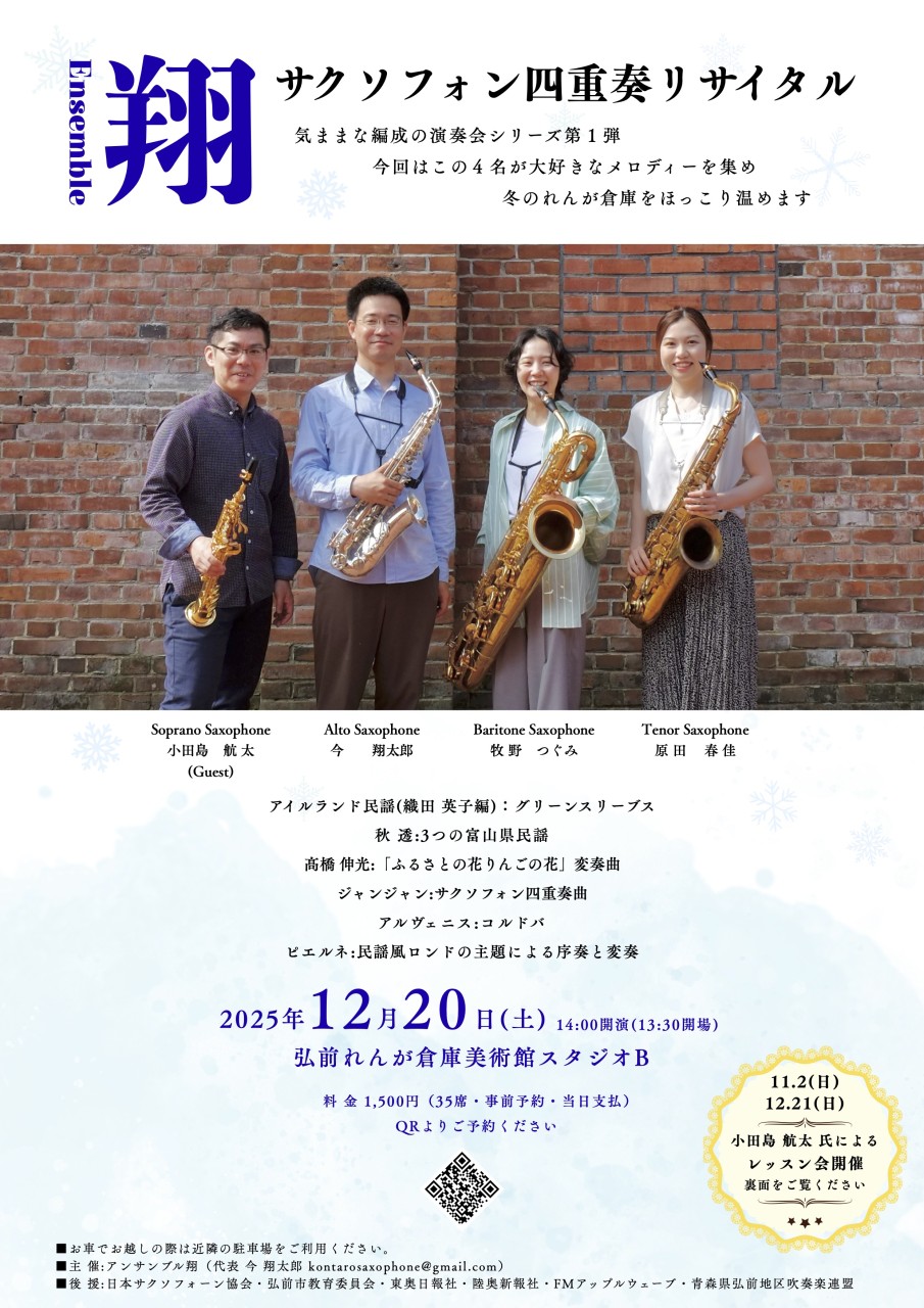 催し物名 | 【弘前】Ensemble翔 サクソフォン四重奏リサイタル |