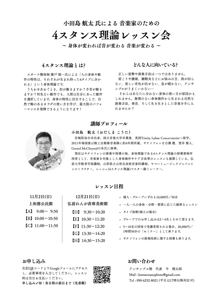問い合わせ | アンサンブル翔(代表 今翔太郎 kontarosaxophone@gmail.com) |